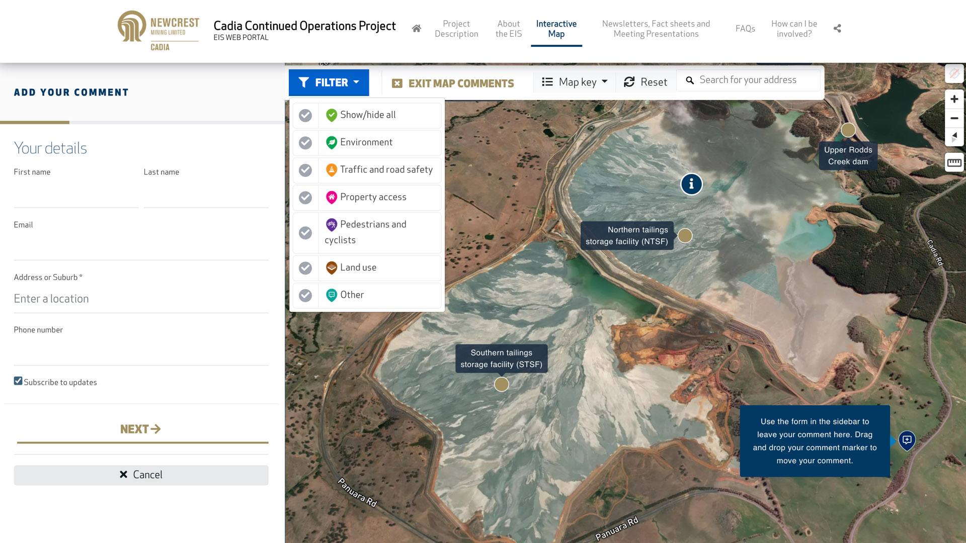 We created an engagement portal for Newcrest Mining's Cadia Continued Operations Project designed to engage with stakeholders and explain in detail the project and its long-term future. From bringing their Environmental Impact Statement (EIS) to life and displaying a simple to understand graphical timeline of activities, to interactively mapping the project, landowners, stakeholders and more, we have created a powerful tool that will support community feedback, clearly articulates Newcrest’s vision for the site and opportunities for future feedback and community consultations.