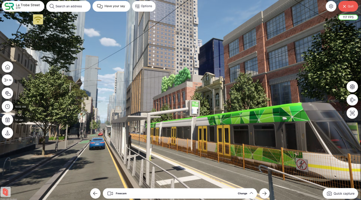 The suite of digital assets we created allows stakeholders to understand how these changes directly affect and benefit them. An entire model of the Latrobe St corridor in our platform Spatial Reality enables users to explore at any angle, different time of day and weather, shadowing and precinct integration. The interactive 3D includes detailed accurate depiction of the new tram stop platforms, shelters, lane configuration, cycling route, driver and tram corridor integration eanbling easier communication and dispeling myths on how the project would rollout.